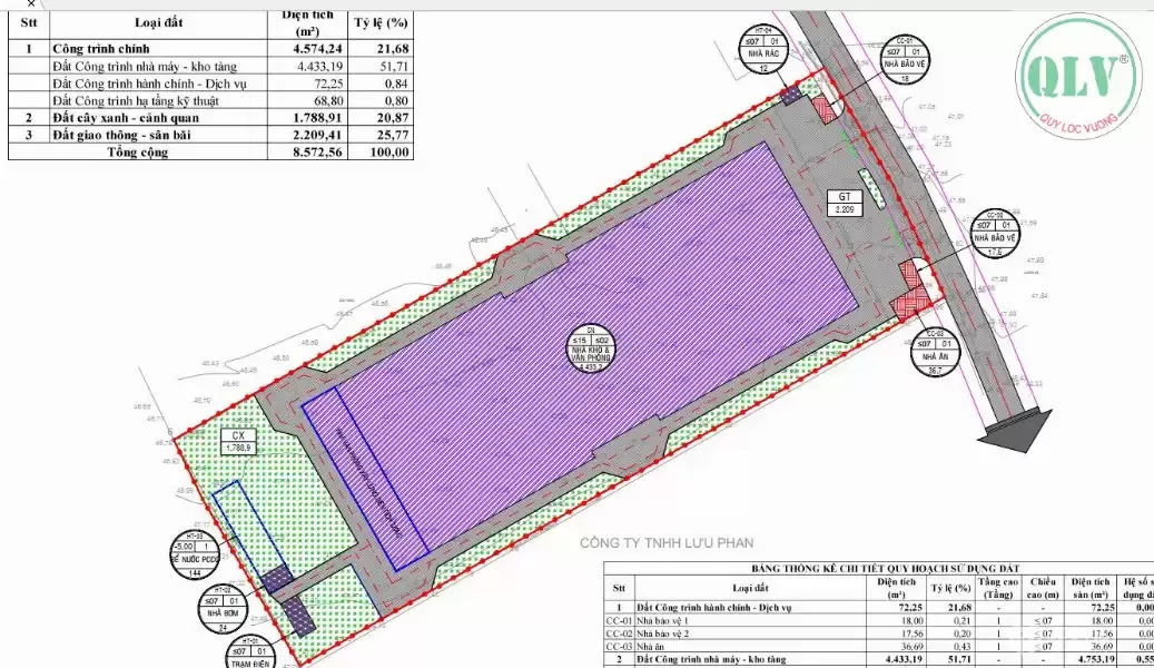 Tổng diện tích xây dựng: 9.344m² (gồm 2 nhà xưởng)